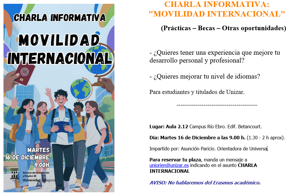 [Einapracticas] Próxima Charla Movilidad Internacional (Prácticas-Trabajo- Voluntariado...) - 16 Diciembre