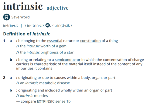 Let me begin by defining ‘intrinsic’ from Merriam-Webster (