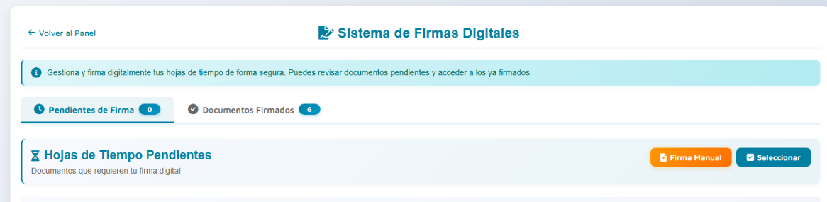 Al acceder aparecerán las opciones de hojas "Pendientes de firma" y