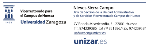 la Conserjería del Vicerrectorado del Campus de Huesca. Os informamos